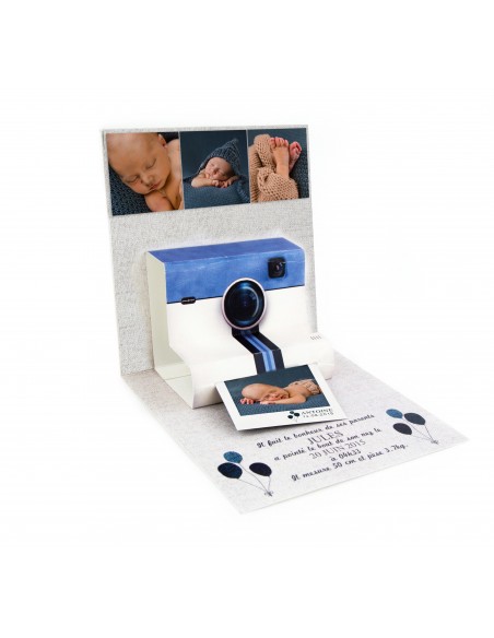 Pack Faire-part Naissance Pop Up Polaroid Ballon - Collection Antoine