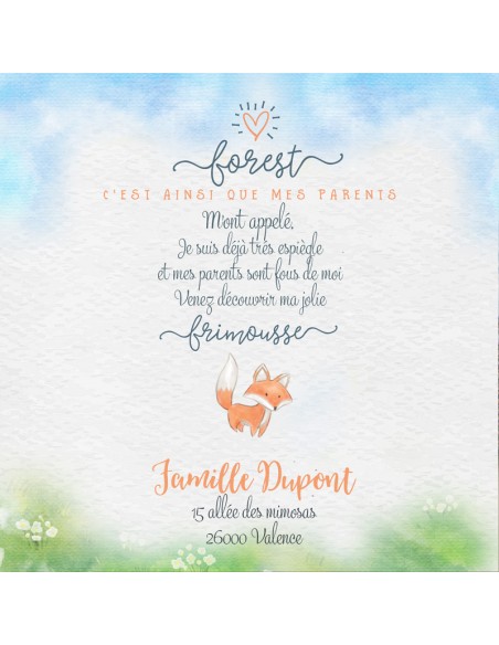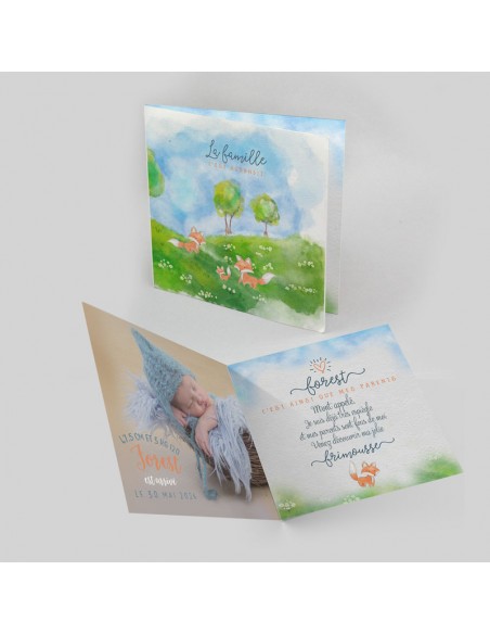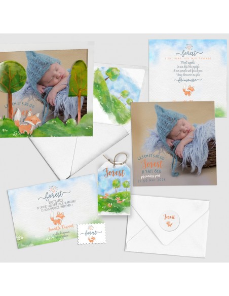 Pack :Faire-part Naissance Famille de renard - Collection Forest