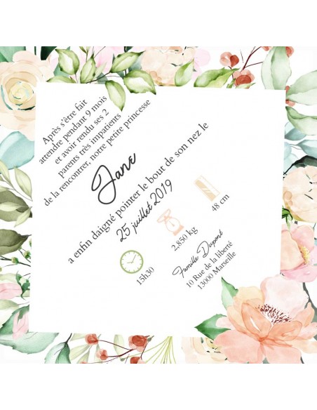 Pack :Faire-part Naissance Floral - Collection Jane