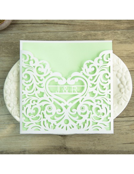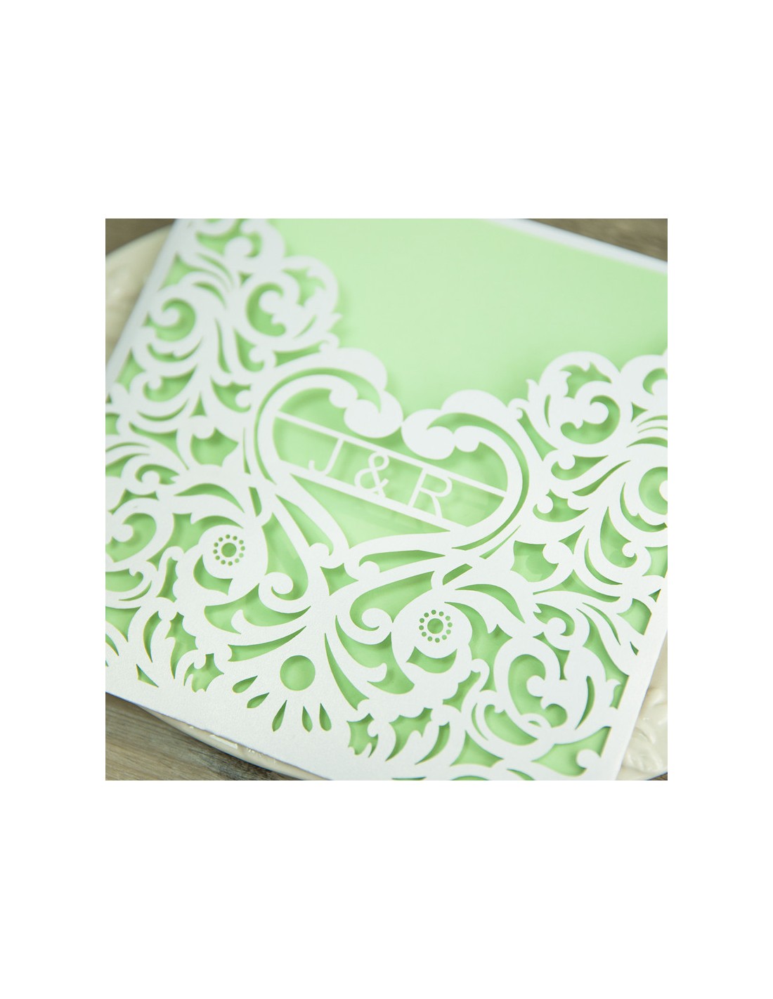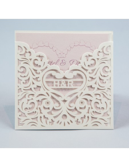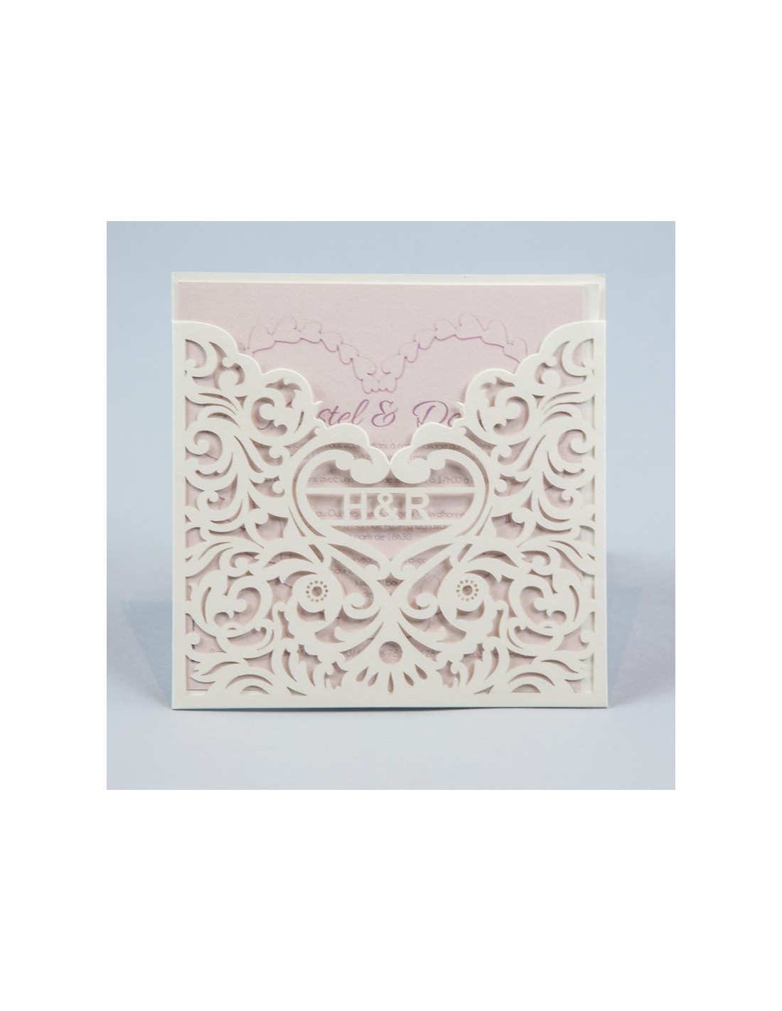 Pack Faire-part Mariage Dentelle et Coeur personnalisé - POC0143