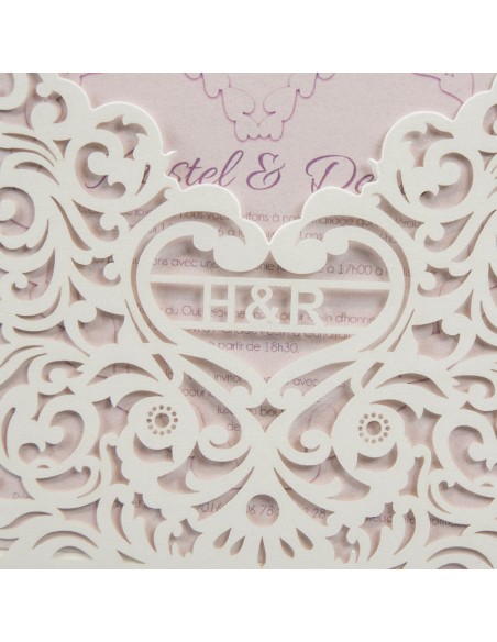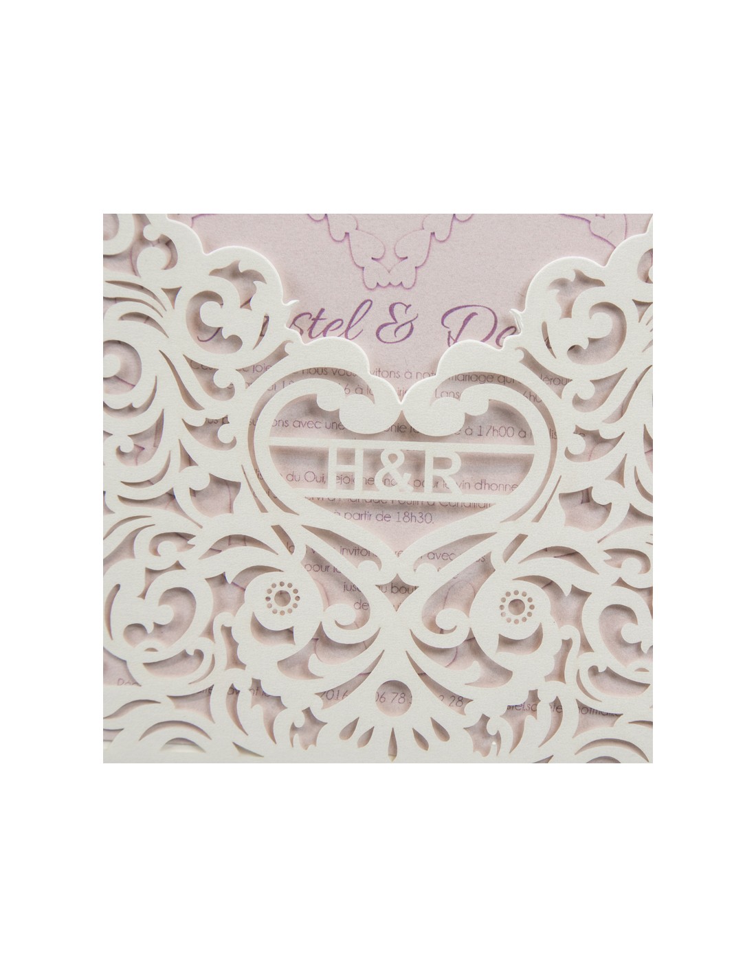 Pack :Faire-part Mariage Dentelle et Coeur personnalisé - POC0143