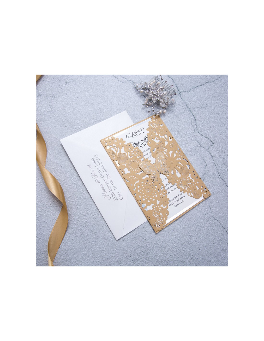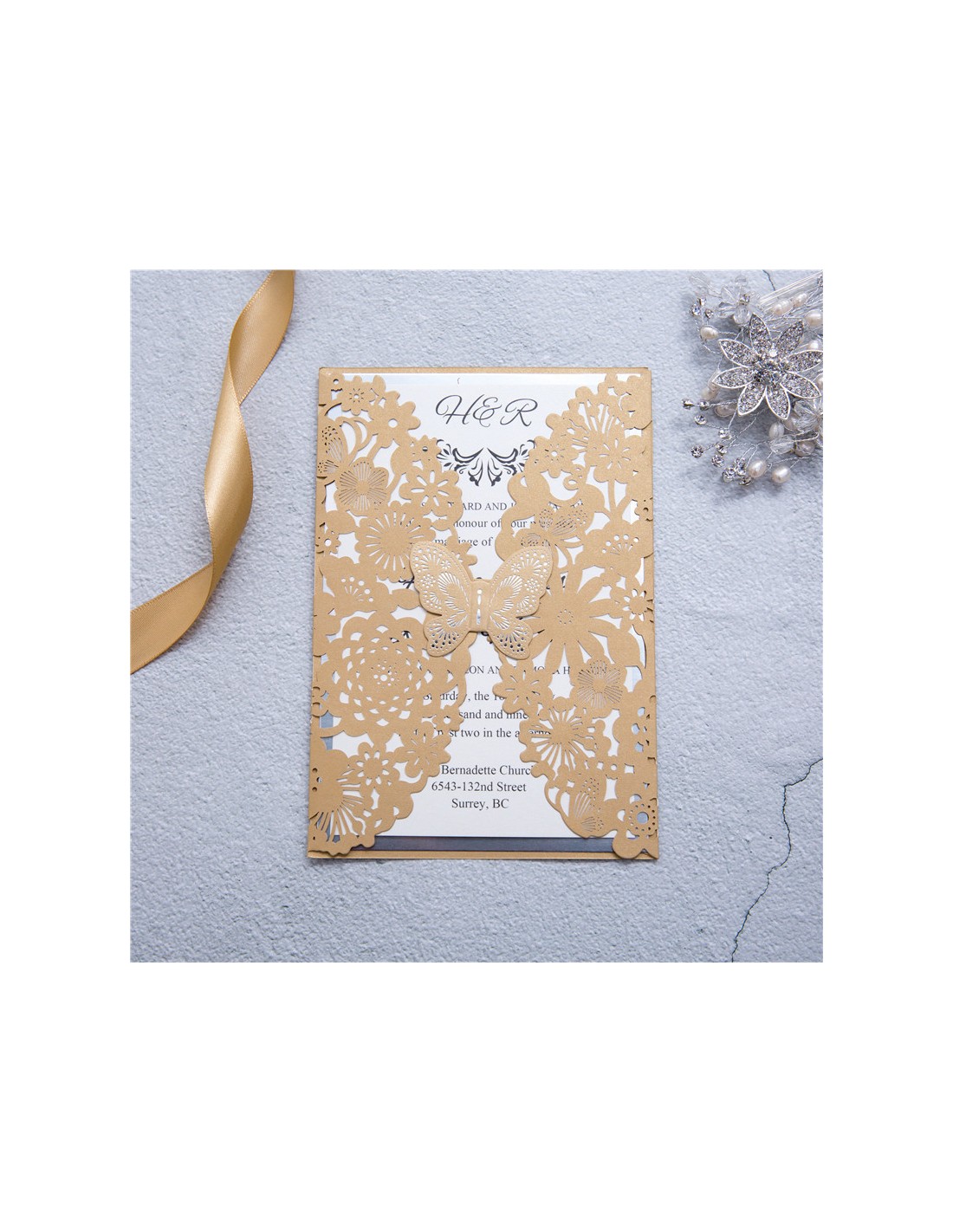 Pack Faire-part Mariage dentelle Papillon - POC0073