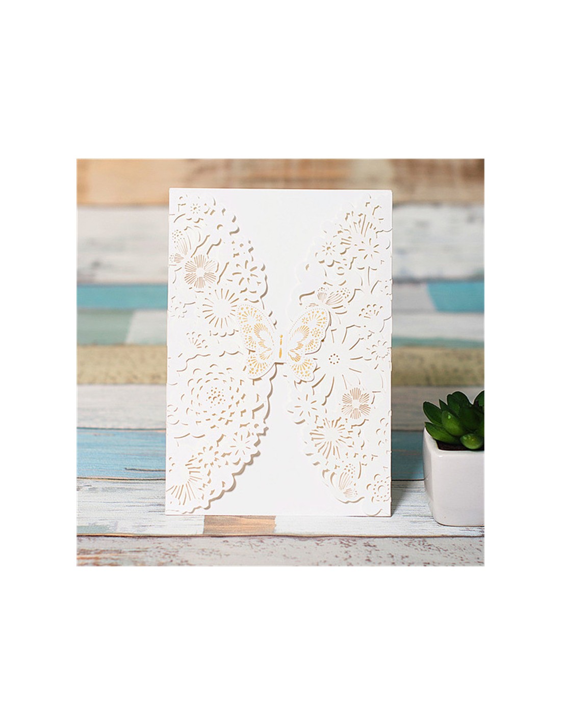QUANTITÉ MINIMUM 30 EXEMPLAIRES : 30 x - Faire-part Mariage dentelle Papillon - POC0073 - Quantité - Choisissez votre quantité