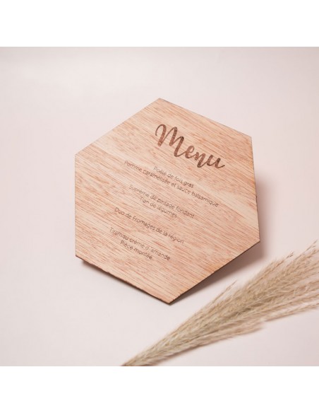 Menu de mariage gravé sur bois ou plexi.