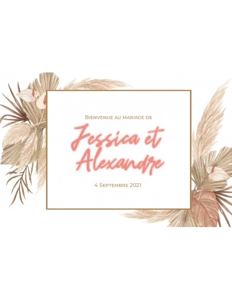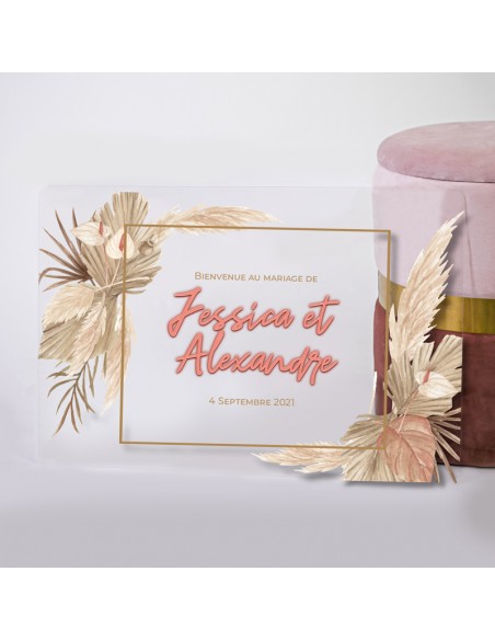 Tableau de bienvenue Mariage Plexiglas - thème pampa-collection Jessica et Alexandre