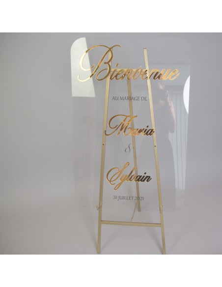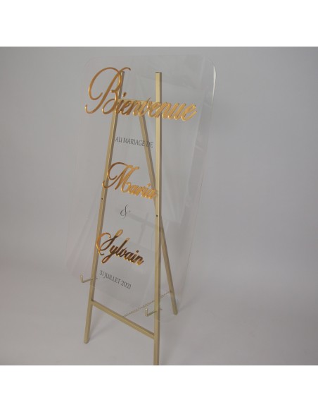 Tableau de Bienvenue Mariage en Plexiglas avec mot en relief Or