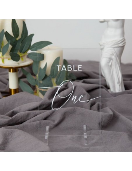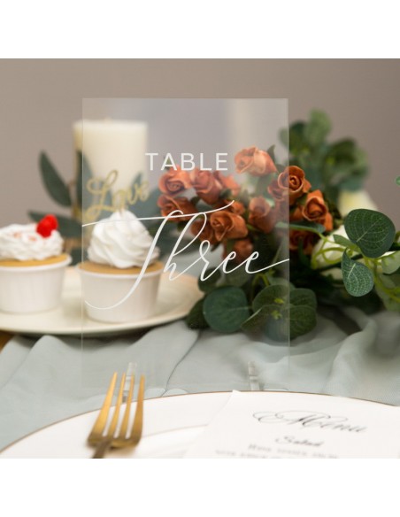 Personnalisez vos numéros ou noms de table avec un décor floral imprimé en vernis relief UV sur plexi transparent ou effet givré.